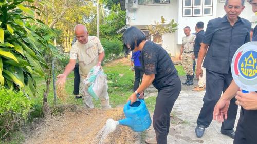 พร้อมนี้ นายไตรทิพย์ สกุลประดิษฐ์ นายอำเภอเกาะยาว เน้นย้ำให้เจ้าหน้าที่ส่วนราชการ ผู้นำชุมชน ปลูกพืชผักสวนครัวในครัวเรือนอย่างน้อย 10 - 30 ชนิด โดยเน้นปลูกพืชที่บริโภคเป็นประจำ พืชท้องถิ่น และสมุนไพรพื้นบ้าน เป็นการสร้างคลังอาหารในครัวเรือน สามารถลดรายจ่าย และพึ่งพาตนเองได้อย่างยั่งยืน ณ บ้านพักนายอำเภอเกาะยาว จังหวัดพังงา